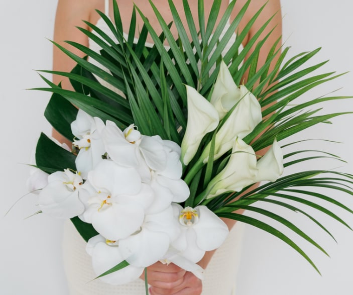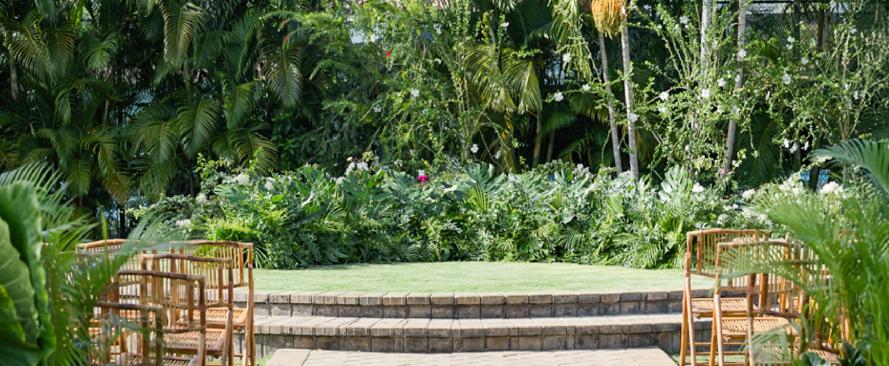 Made for love, designed for the planet. Born from the beauty of the Caribbean, this eco-conscious wedding look is rooted in the lush canopies of the island. Picture local flora, tropical hardwood, and delicate white accents — every detail designed to let nature shine. Learn more about our Eco-Conscious Wedding Practices.
